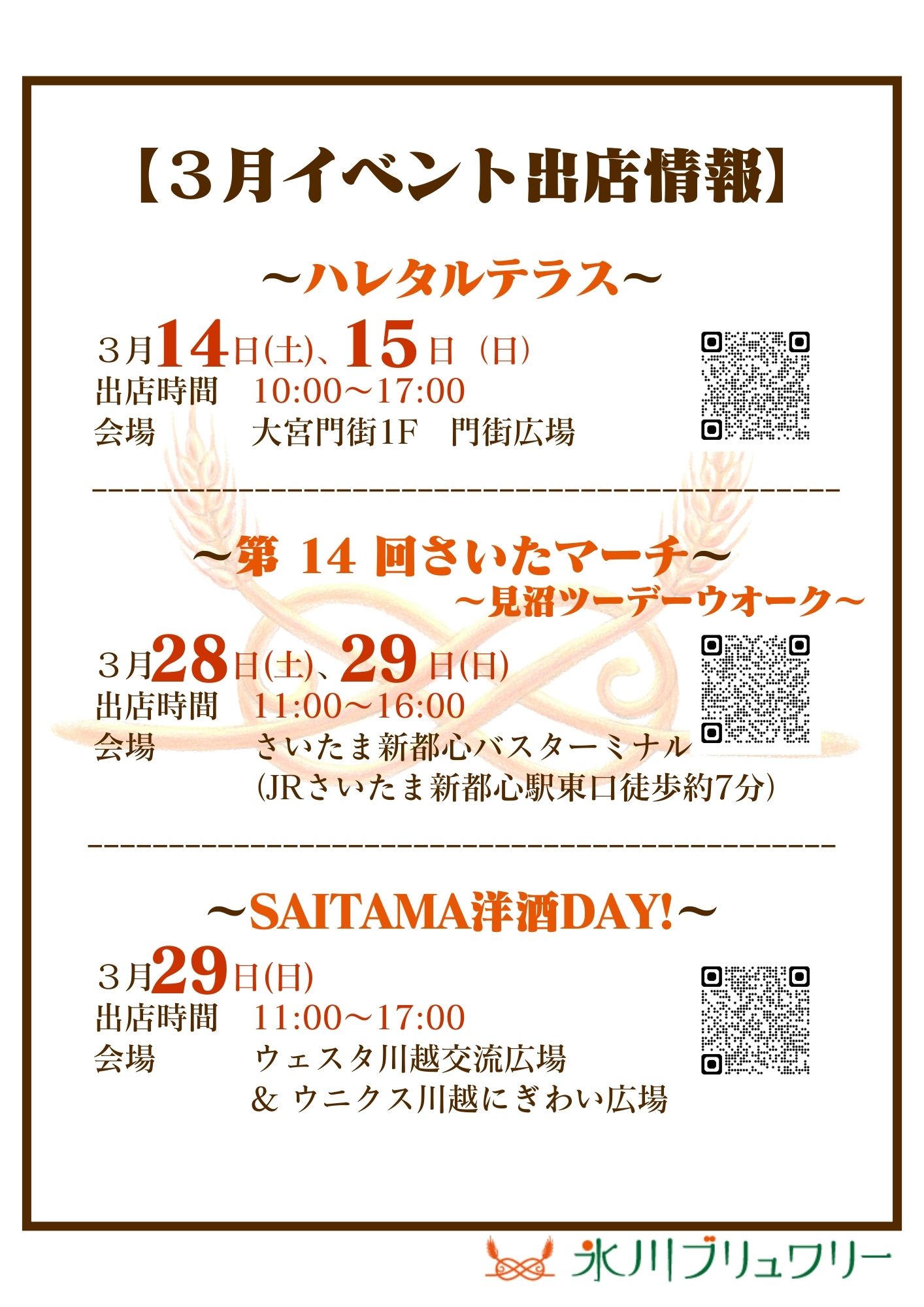 羽生のこぶし花ビールさん、所沢ビールさん、川口ブルワリーさん、越生ブリュワリーさんとご一緒させていただきます。