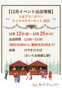 氷川の杜は12月12日〜25日までさいたま新都心、けやきひろばで行われる「クリスマスマーケット」に出店いたします🎄✨